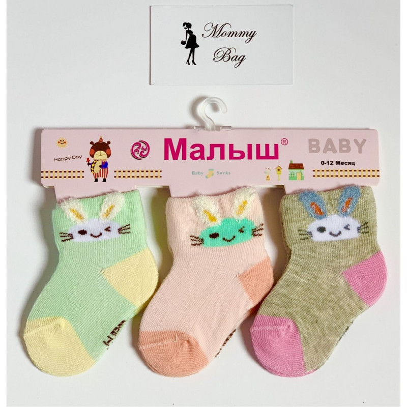 Носочки Малыш Зайки Оранжево-Серые 0-12 мес №9