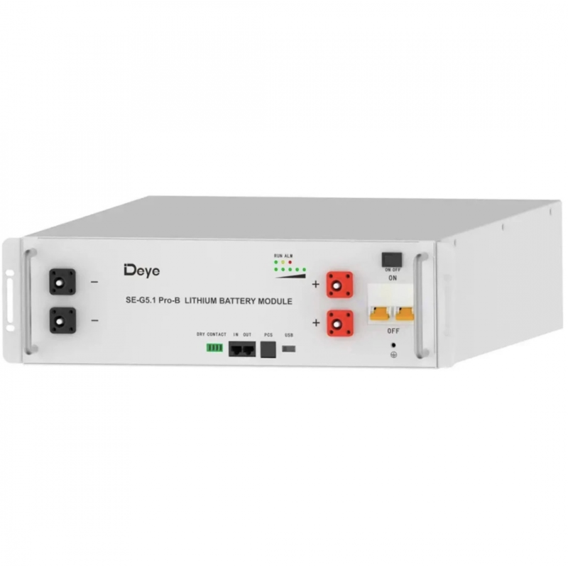 Аккумуляторная батарея DEYE SE-G5.1 Pro-B LiFePO4 LV – это сочетание инноваций и надежности, что обеспечивает оптимальное решение для систем хранения энергии. С номинальным напряжением 51.2V и емкостью 100 Ah она отличается высокой производительностью и долговечностью. Благодаря литий-железо-фосфатной технологии, DEYE SE-G5.1 Pro-B обеспечивает стабильную работу, высокий КПД заряда и разряда.