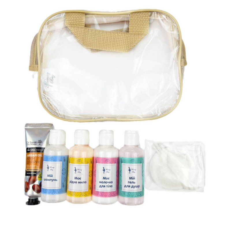 7. Косметичка Мини прозрачная Mommy Bag Бежевая - 18x14x4 см
