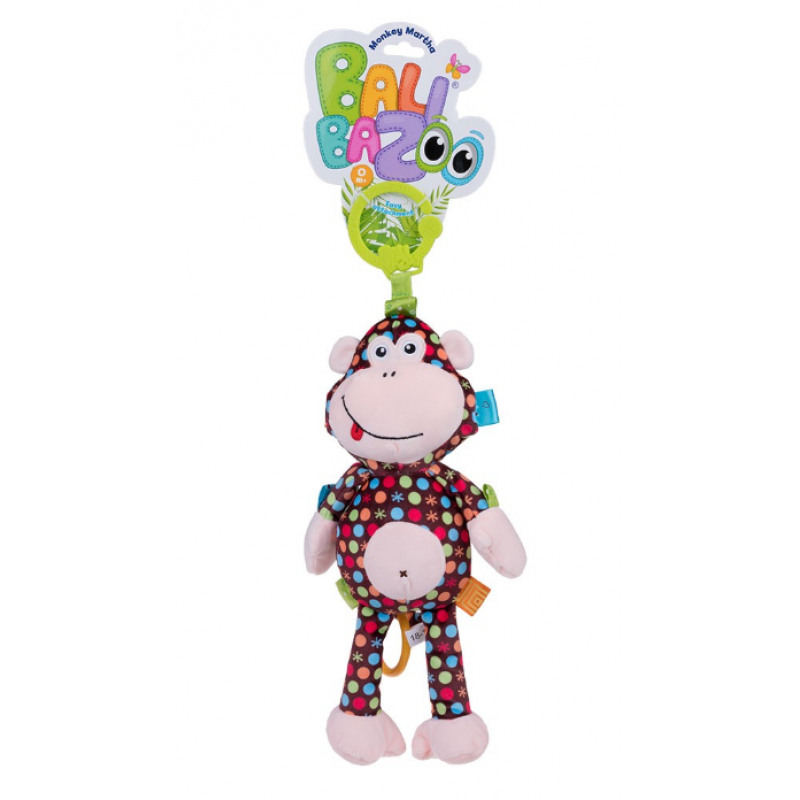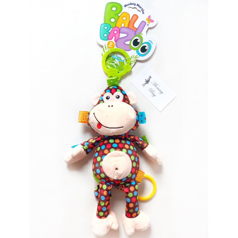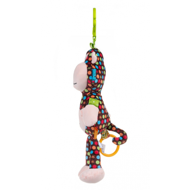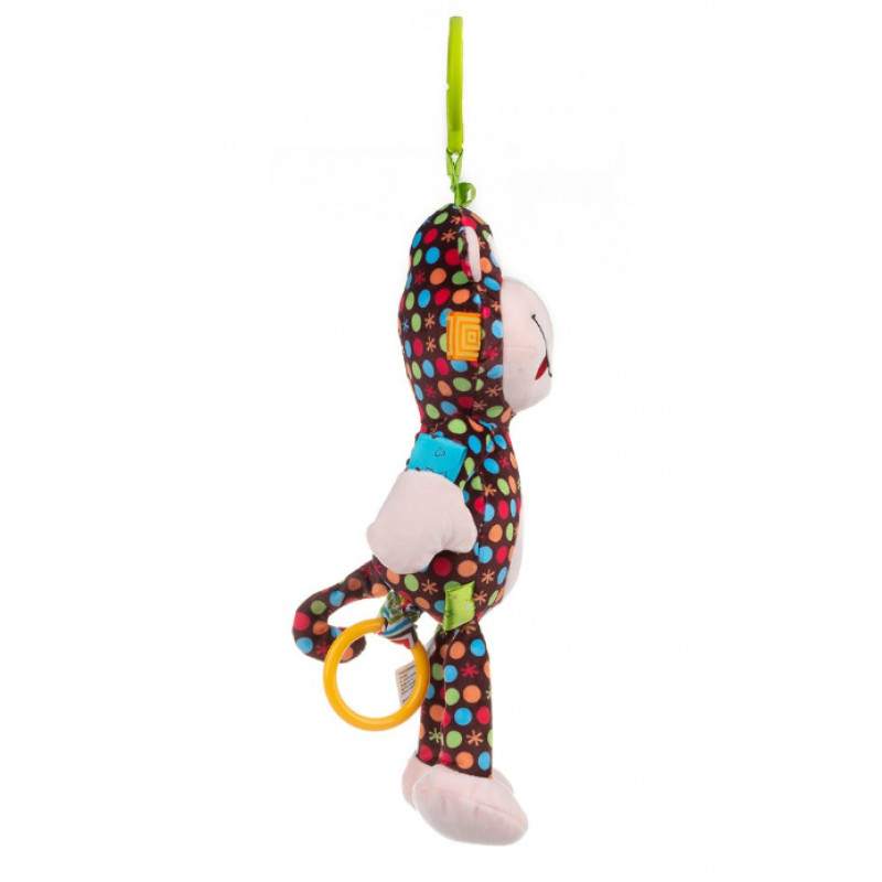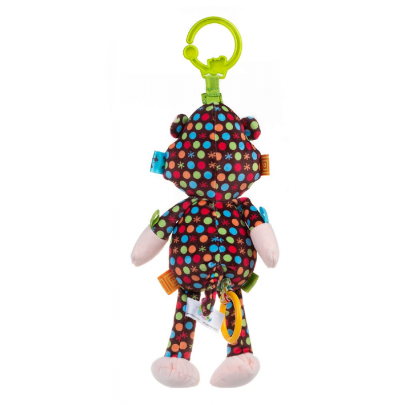 Обезьяна дополнительно украшена материальными бирками различных текстур, которые развивают познавательные способности малыша и побуждают его познавать мир, но ... только после сладкого сна.