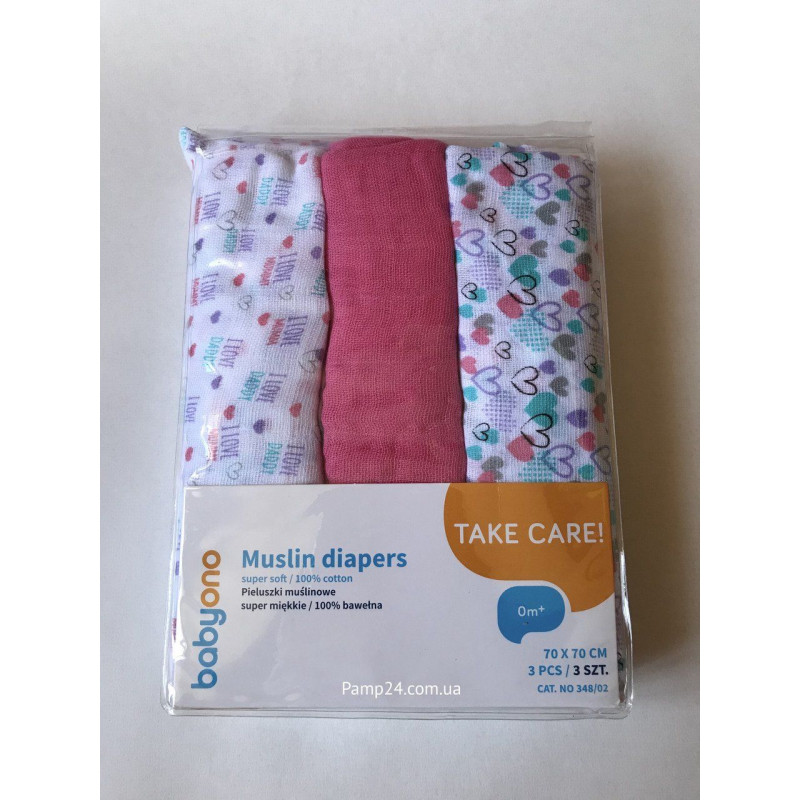 Муслиновые пеленки BabyOno Cупермягкие Набор 3 шт. Розовые 70х70 см