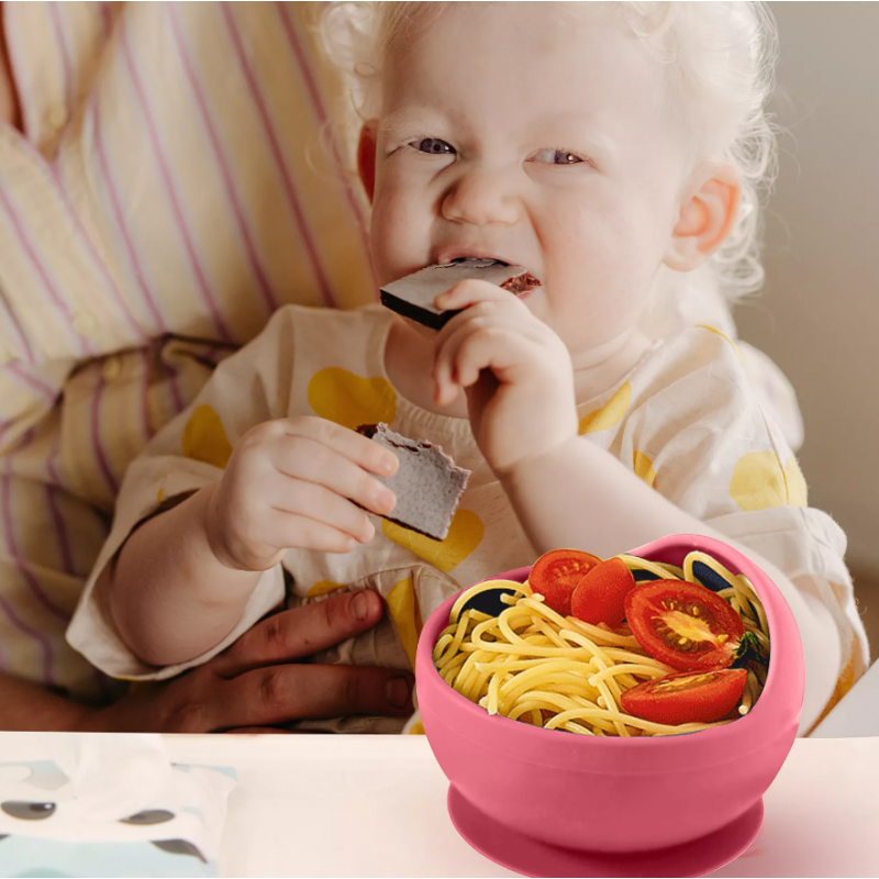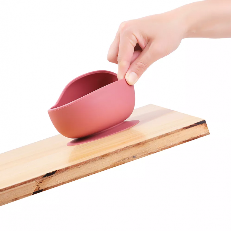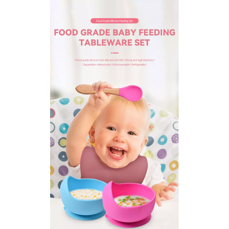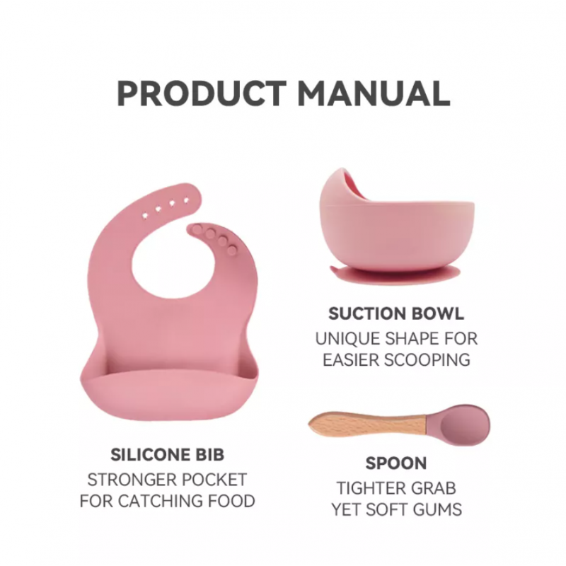 Набор силиконовой посуды 3 ед. Розовый (нагрудник, тарелочка, ложка)