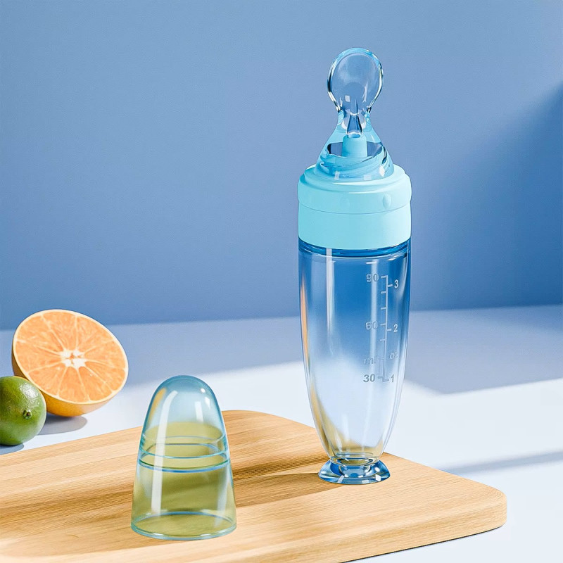 Бутылочка для кормления Премиум с ложкой (для прикорма) 90 мл Голубая