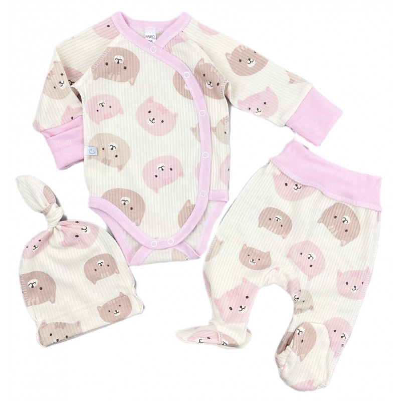 Комплект 3 ед. RoyalBaby Розовые котики (интерлок) р.56, 0-3 мес