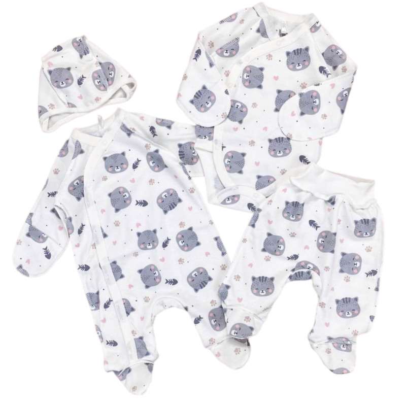 Комплект 4 ед. RoyalBaby Серые котики (байка) р.56, 0-3 мес