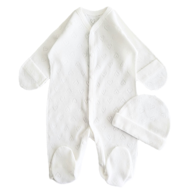 Человечек с шапочкой RoyalBaby Ажур Молочный с сердечками р.56, 0-3 мес