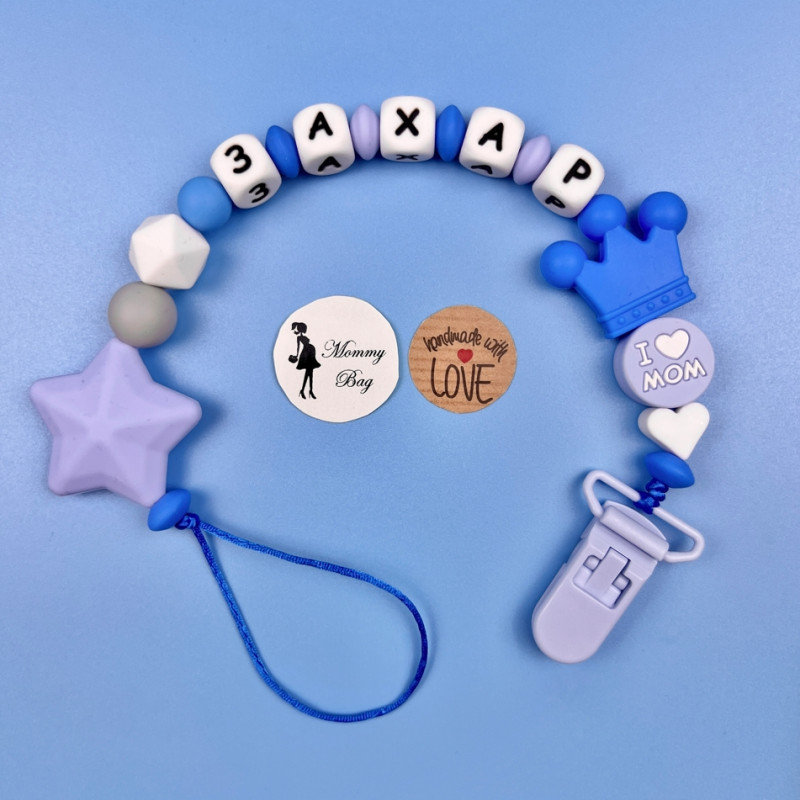 Именной силиконовый держатель изготовлен из 100% пищевого силикона и его можно использовать для детей с рождения. Он мягкий, крепкий, абсолютно безопасный для крох, а еще помогает развивать мелкую моторику пальчиков у малышей. Это один из самых полезных аксессуаров в родительском “арсенале”.