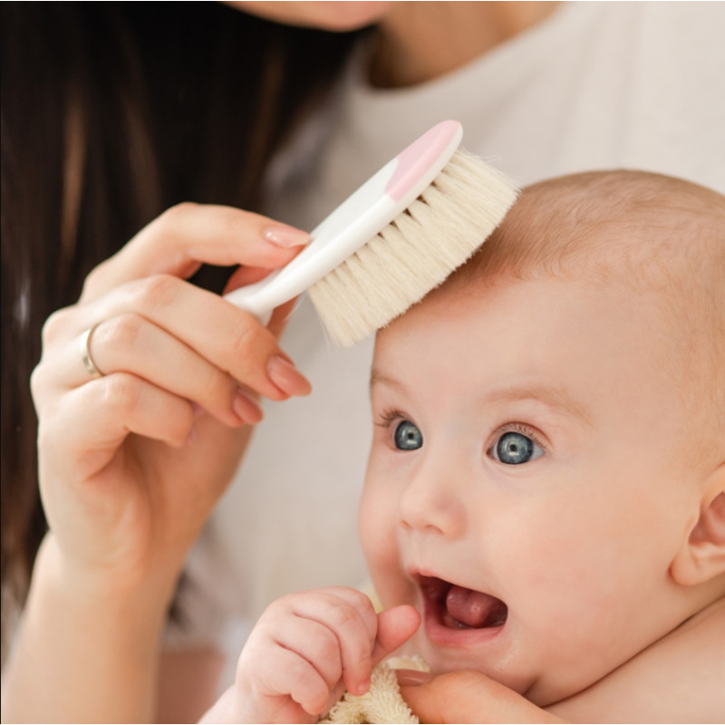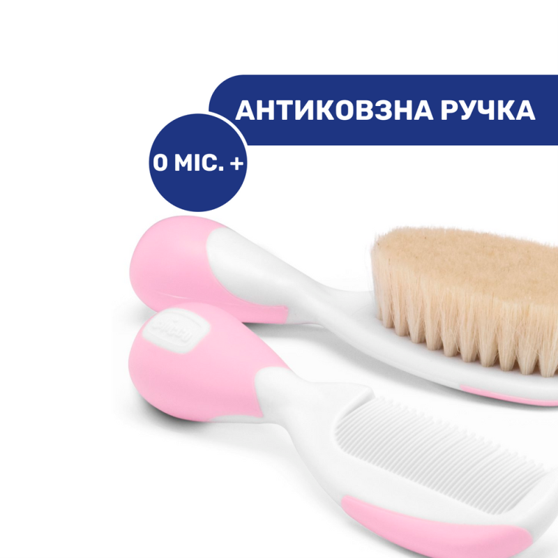 Щетка натуральная и расческа 0-12 месяцев Chicco, розовая