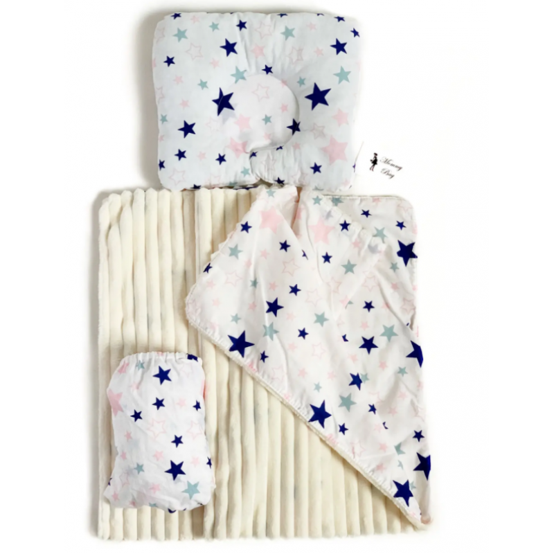 Набор в коляску 3в1 (простынь, плед, подушка) Звездочки №9