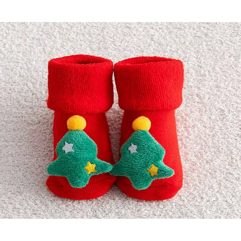 Носочки нарядные 0-12 мес (р.18-21) #25 Красные с елочкой (махровые) (размер стельки 11.5 см)