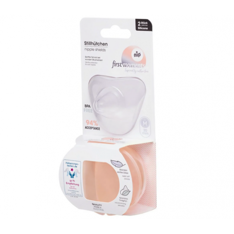 Накладки для сосков "first moment" имеют тонкие стенки, создается особенное ощущение естественного кормления. Это ощущение кормления также поддерживается специальной треугольной формой накладок для сосков, которая обеспечивает максимальный контакт кожи между вами и вашим ребенком (контакт носа с грудью).