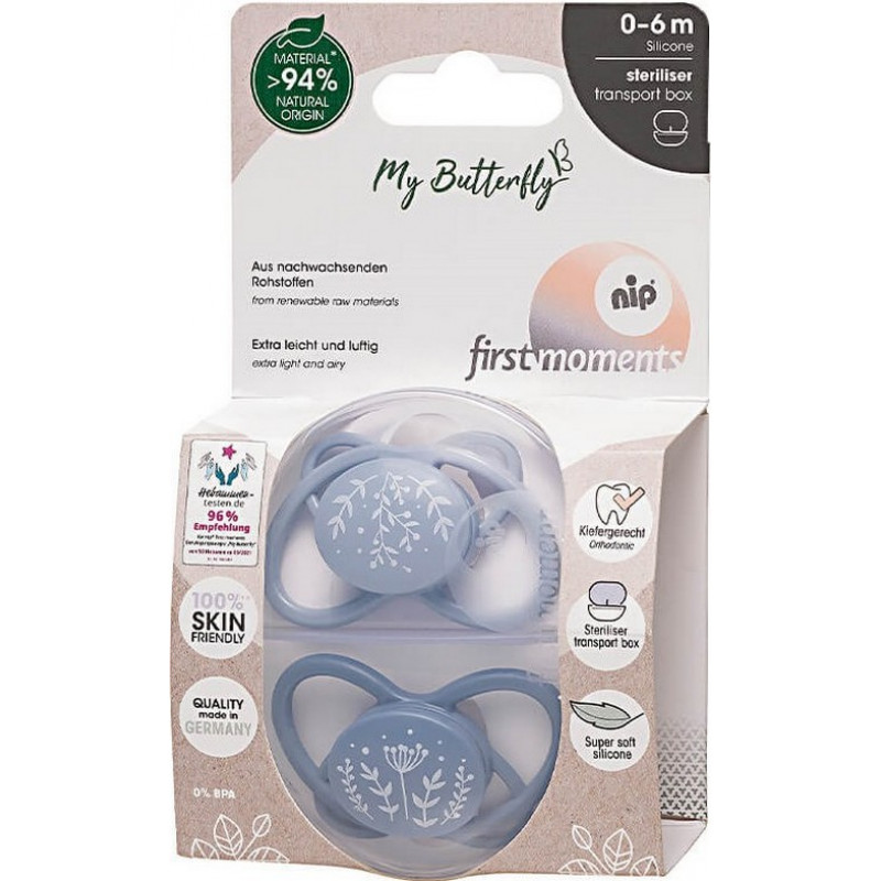 Пустышка Nip (соска) Моя Бабочка (0-6 мес) Синие 2 шт + Футляр-стерилизатор