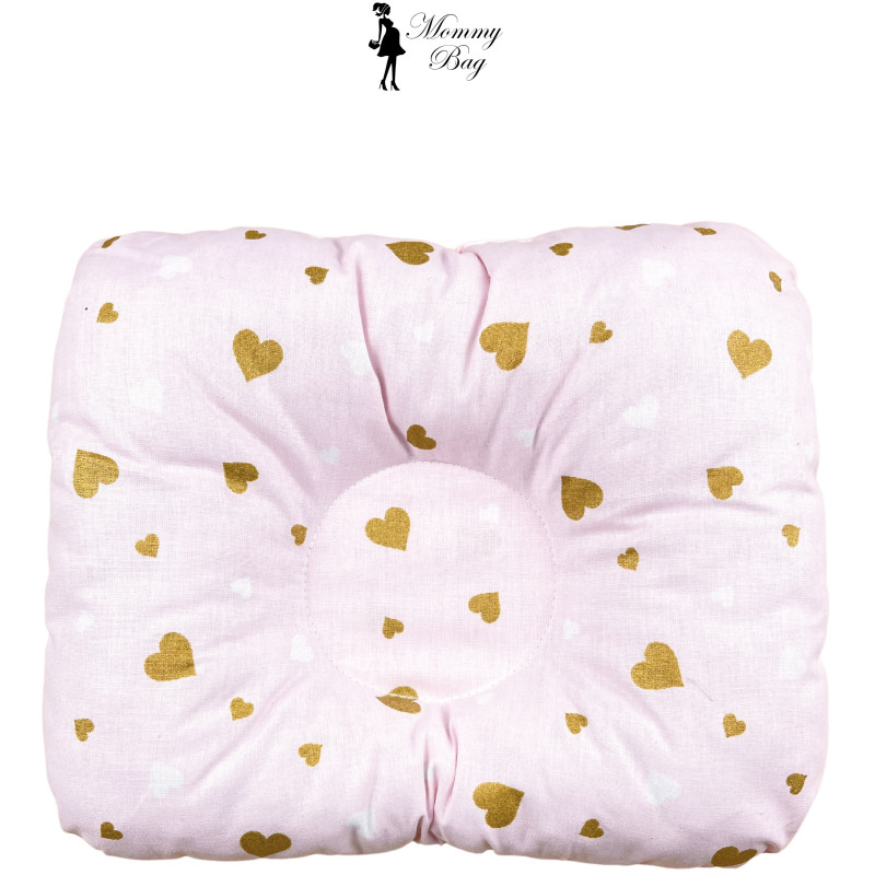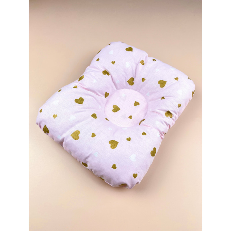 Ортопедическая подушка для новорожденных Розовая с сердечками (глиттер) №16