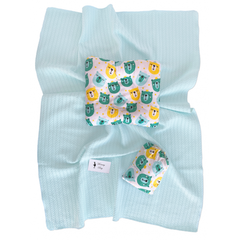 Набор в коляску 3в1 Королевские Мишки с мятным пледом
