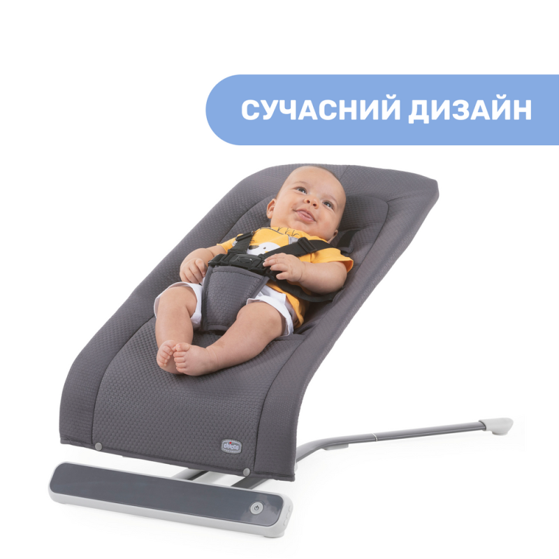 Каркас шезлонга Rhythm’n’Sound изготовлен из прочных материалов, а его форма гарантирует устойчивое положение. Пятиточечные ремни безопасности с двойным замком позволяют быстро и надежно закрепить ребенка в шезлонге.