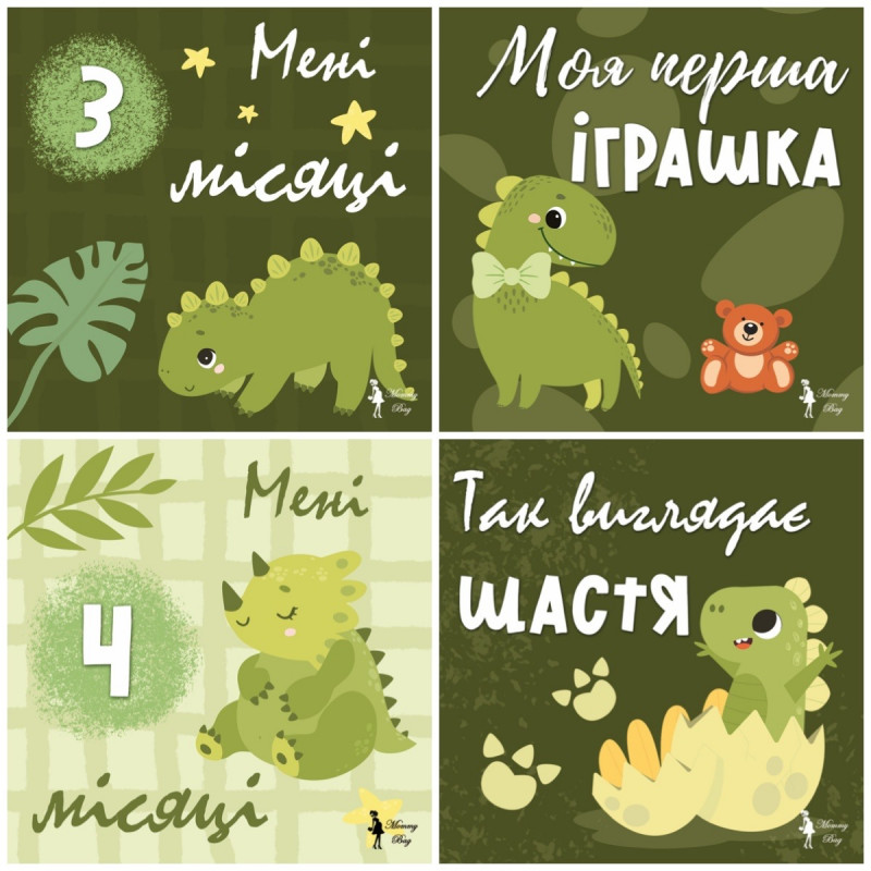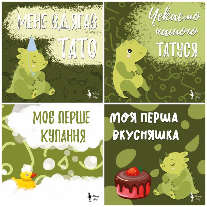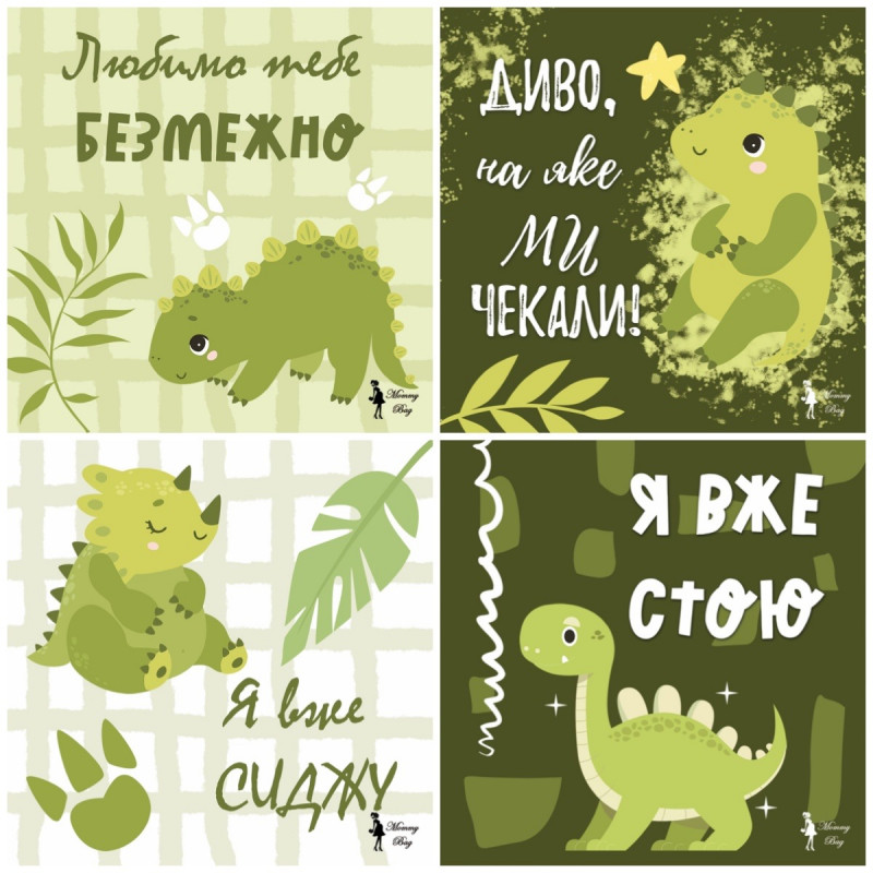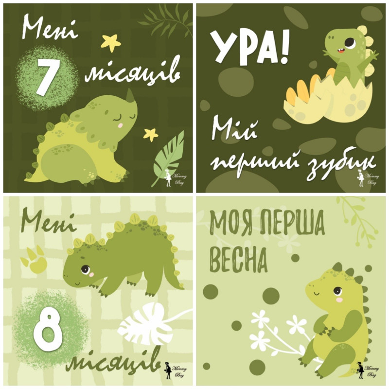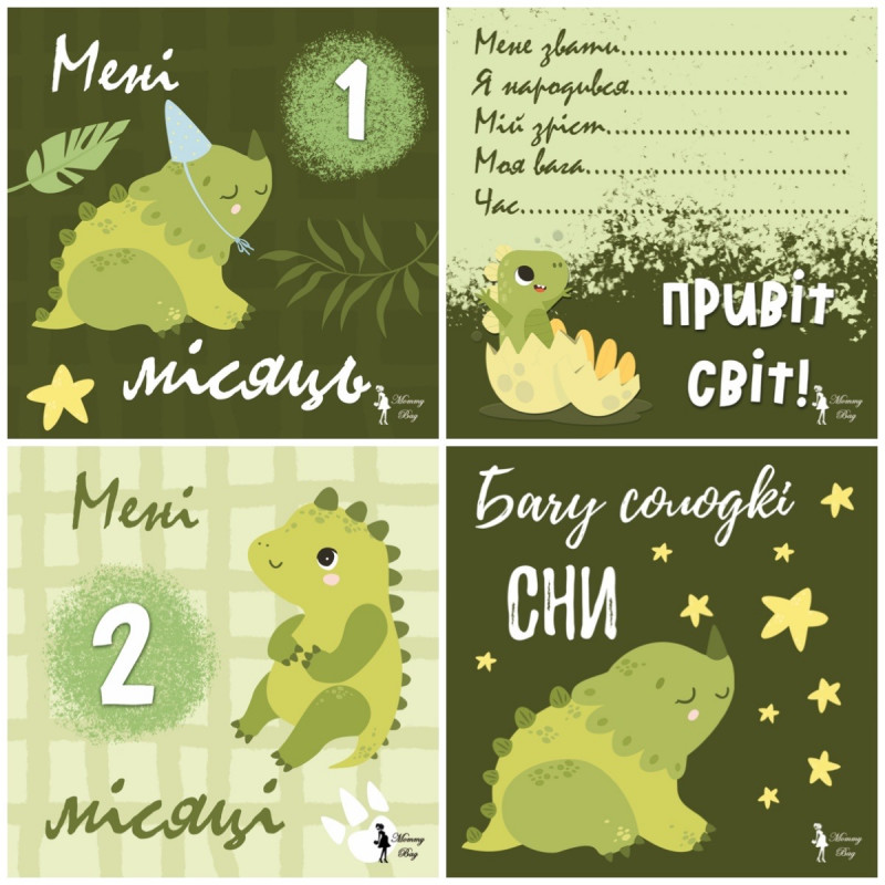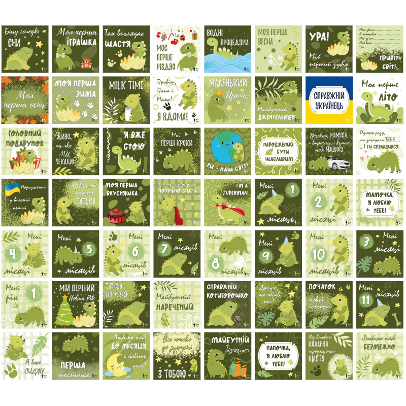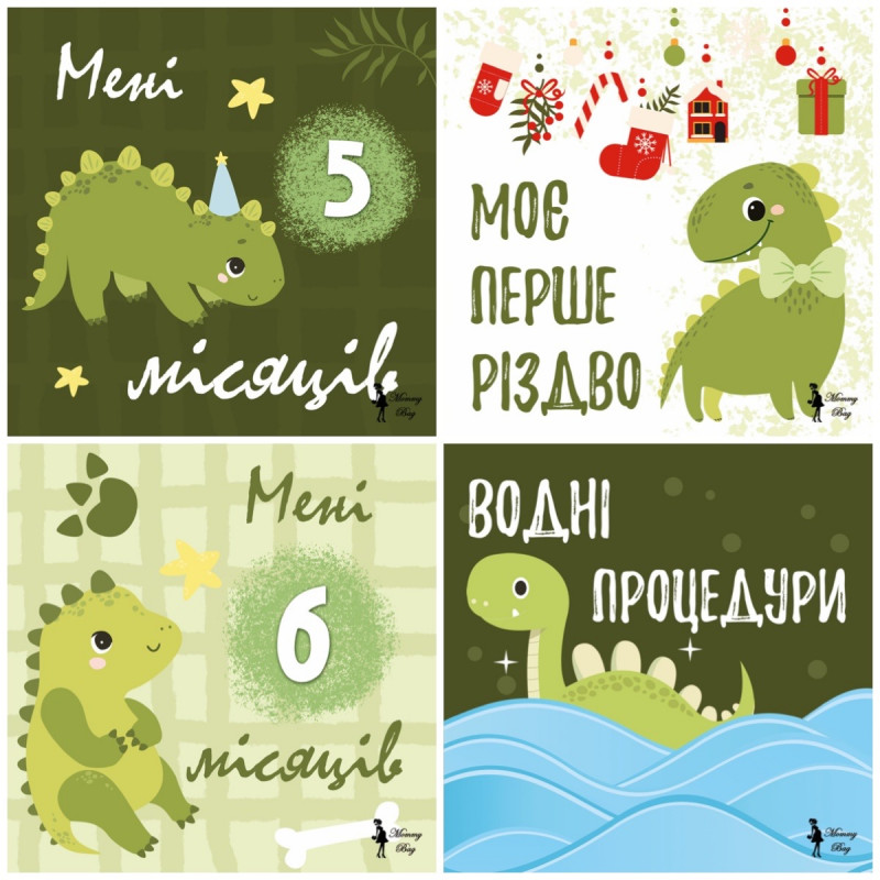 Карточки для фотосессий малыша №2 Динозаврики, набор 30 двусторонних 10х10 см карточек
