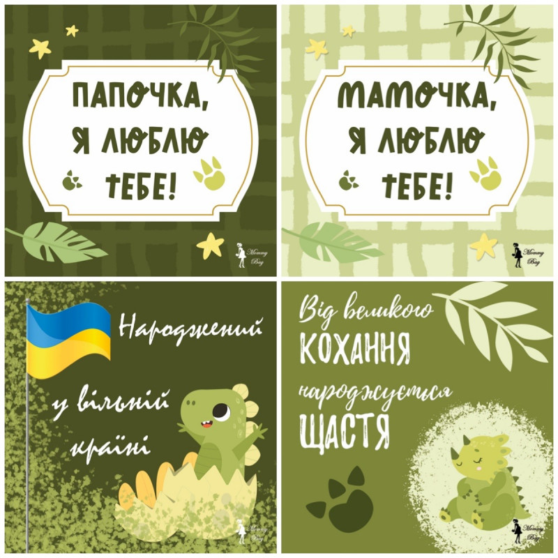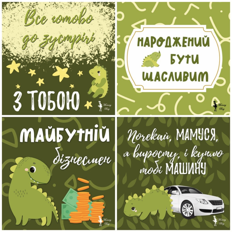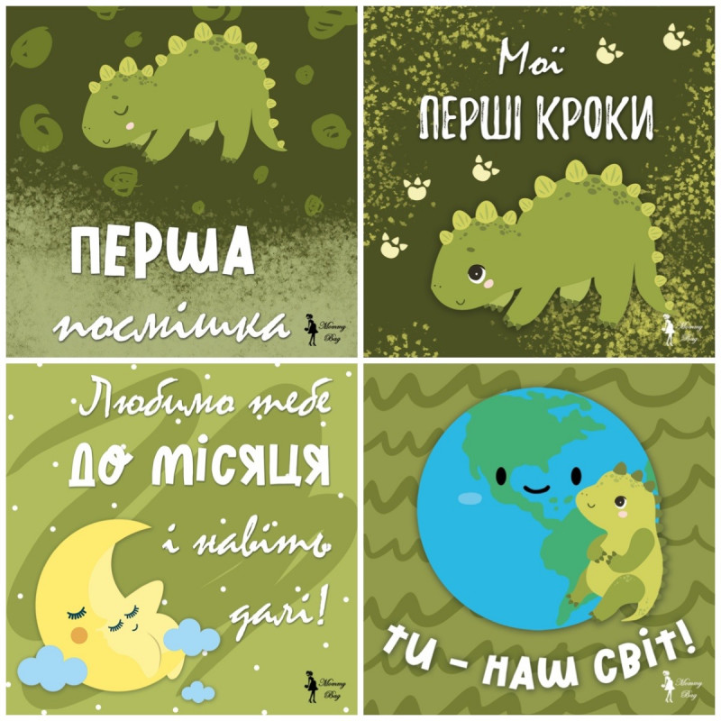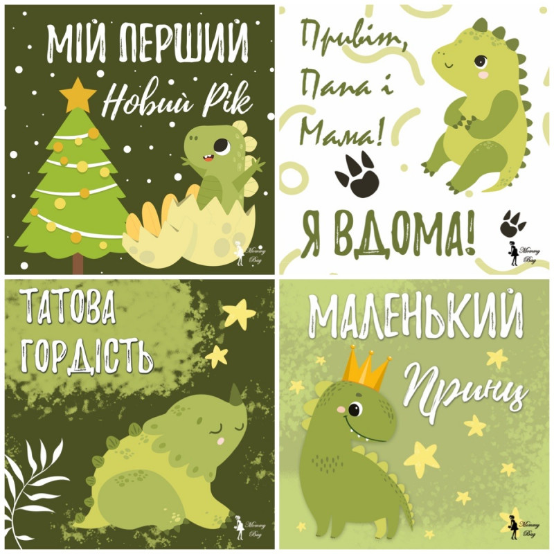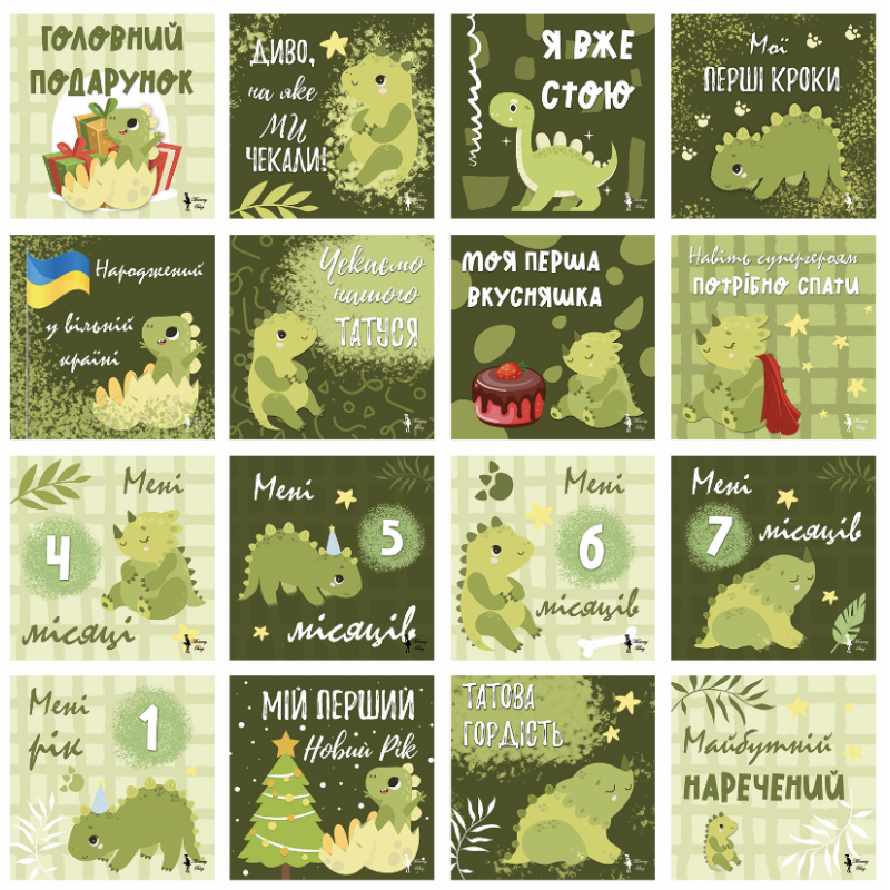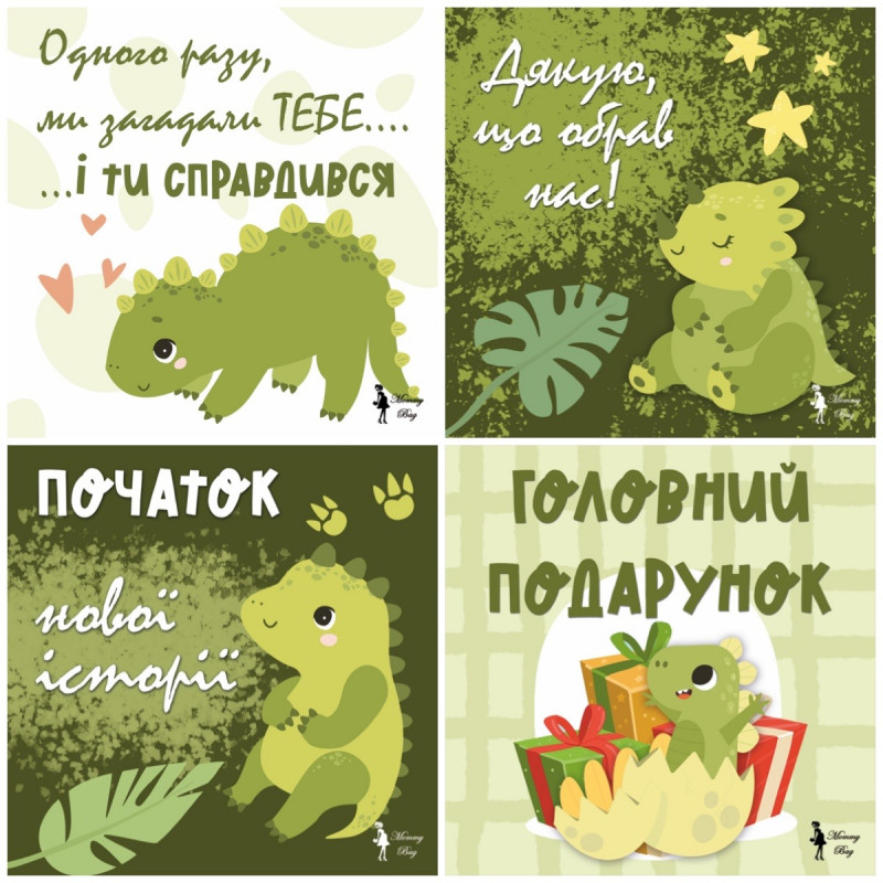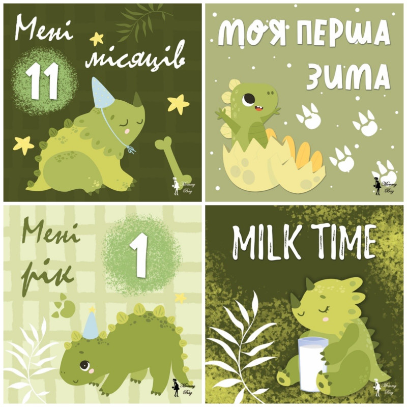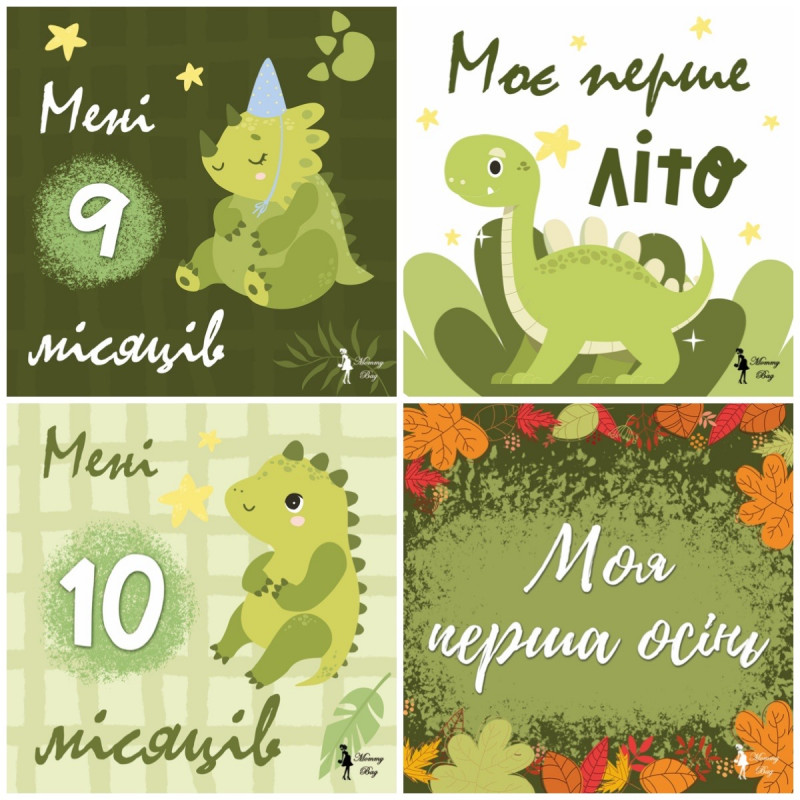 Карточки для фотосессий малыша №2 Динозаврики, набор 30 двусторонних 10х10 см карточек