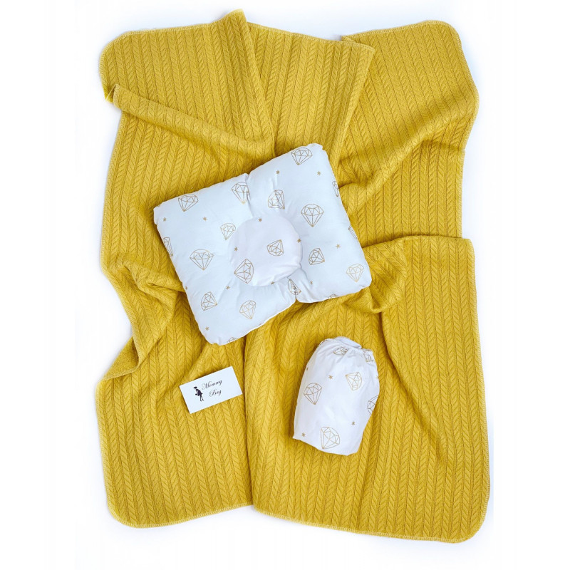Набор в детскую кроватку 3в1 Бриллианты с горчичным хлопковым пледом