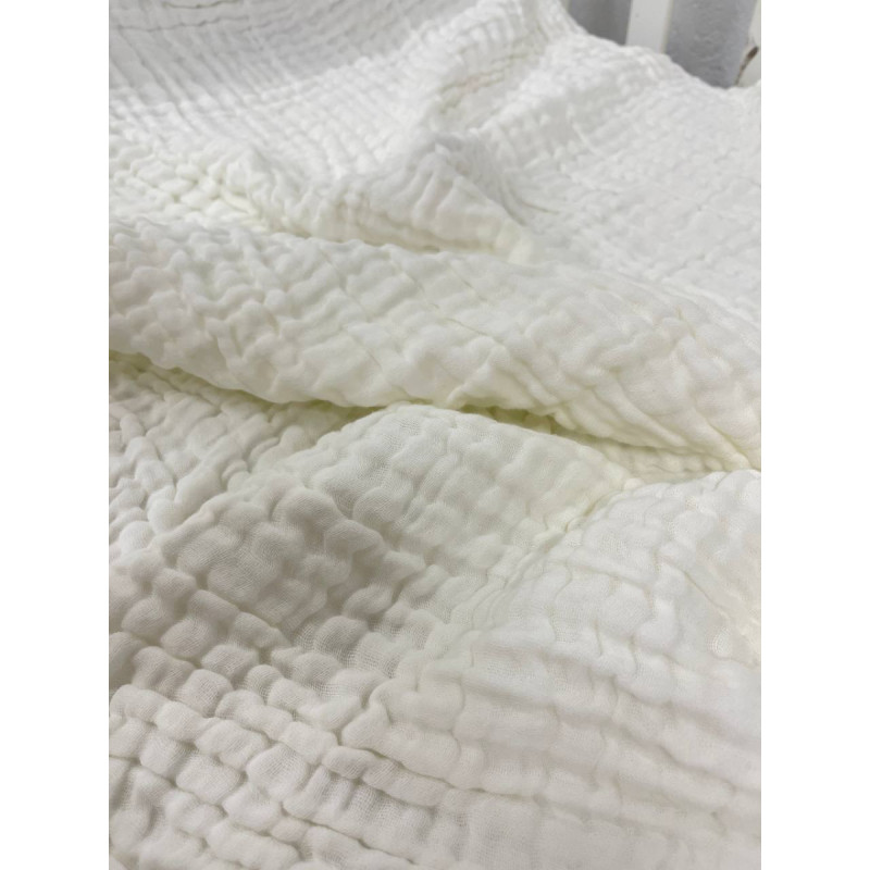 Плед из муслина представляет собой тончайшее, воздушное, но в то же время прочное изделие особенного полотняного переплетения. Уникальностью его является то, что это полотно имеет исключительно натуральный состав.