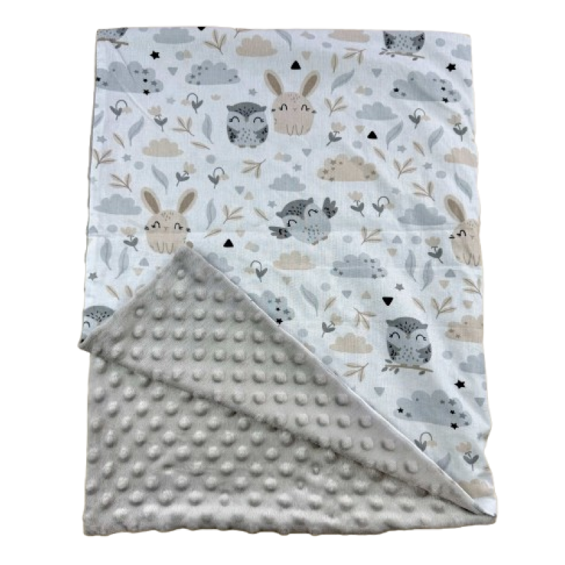Плед 100х80 см Mommy Bag - №21 Совы и зайчики (серый плюш)