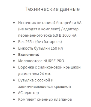 | Объем контейнера для молока | 150 мл |