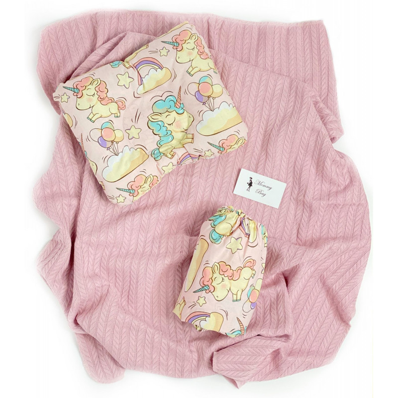 Набор в детскую кроватку 3в1 Единороги с хлопковым пледом