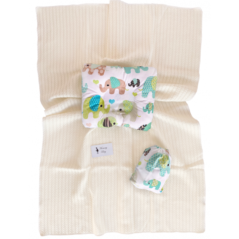 Набор в коляску 3в1 Слоники с молочным хлопковым пледом
