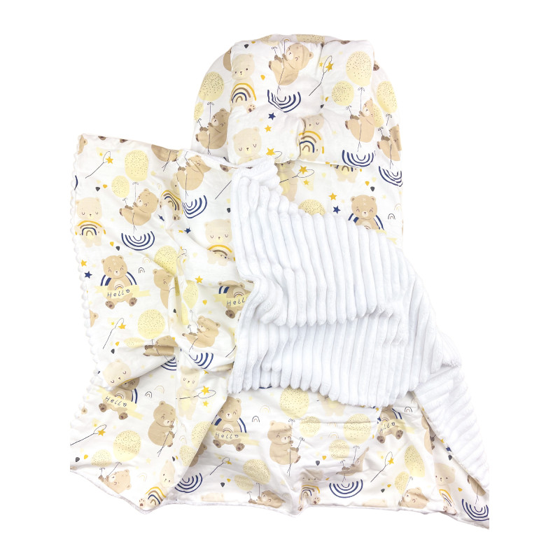 Набор 3в1 в КОЛЯСКУ RoyalBaby №19 Мишка с радугой с пледом