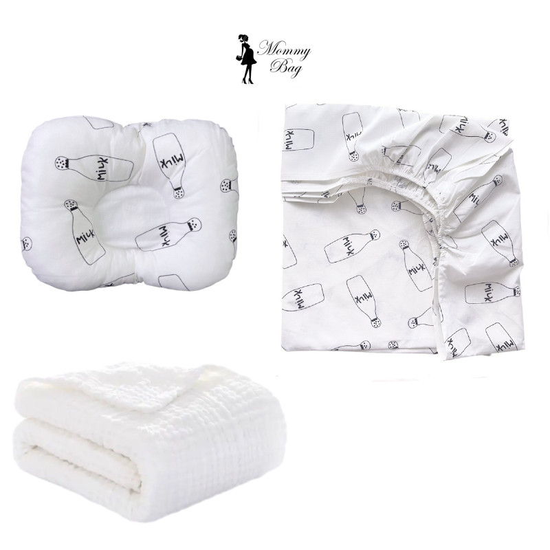 Набор 3в1 в детскую кроватку RoyalBaby №41 Молоко Milk с муслиновым пледом