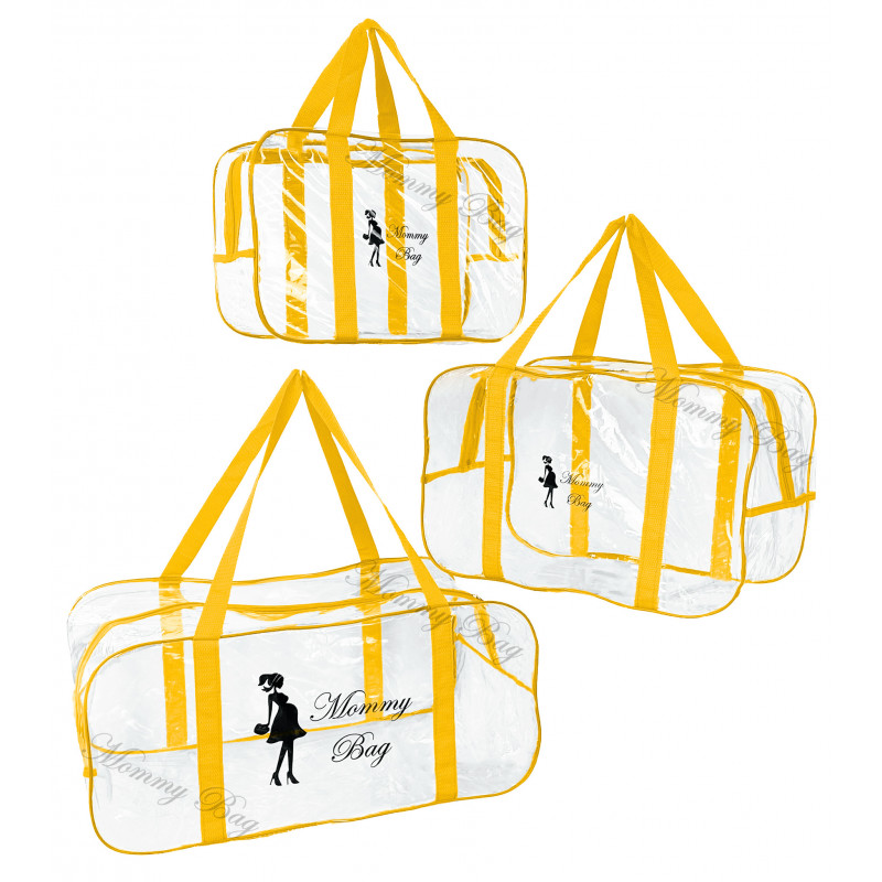 Набор из 3 прозрачных сумок в роддом Mommy Bag (S, M, L) Желтый