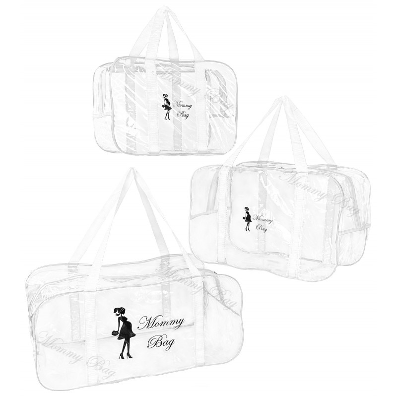 Набор из 3 прозрачных сумок в роддом Mommy Bag (S, M, L) Белый