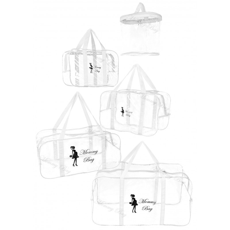 Набор 4+1 прозрачная сумка в роддом Mommy Bag (S, M, L, XL + подарок - органайзер) Белый