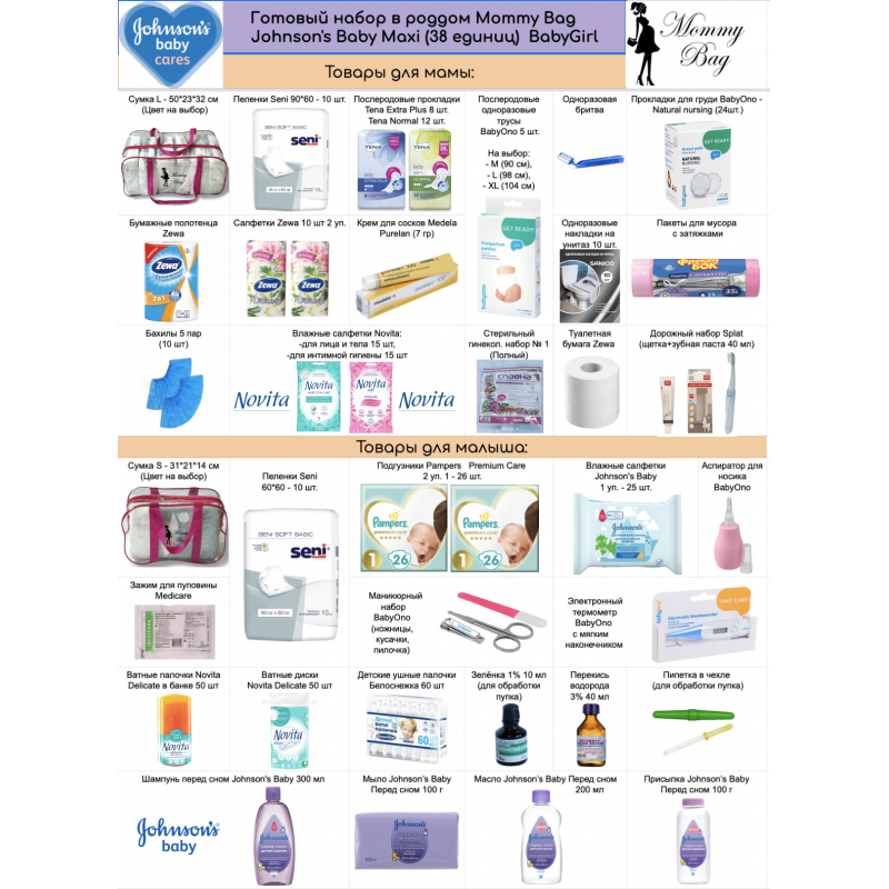 Сумка в роддом Johnson’s Baby Макси 2в1 (38 единицы), – Для девочки