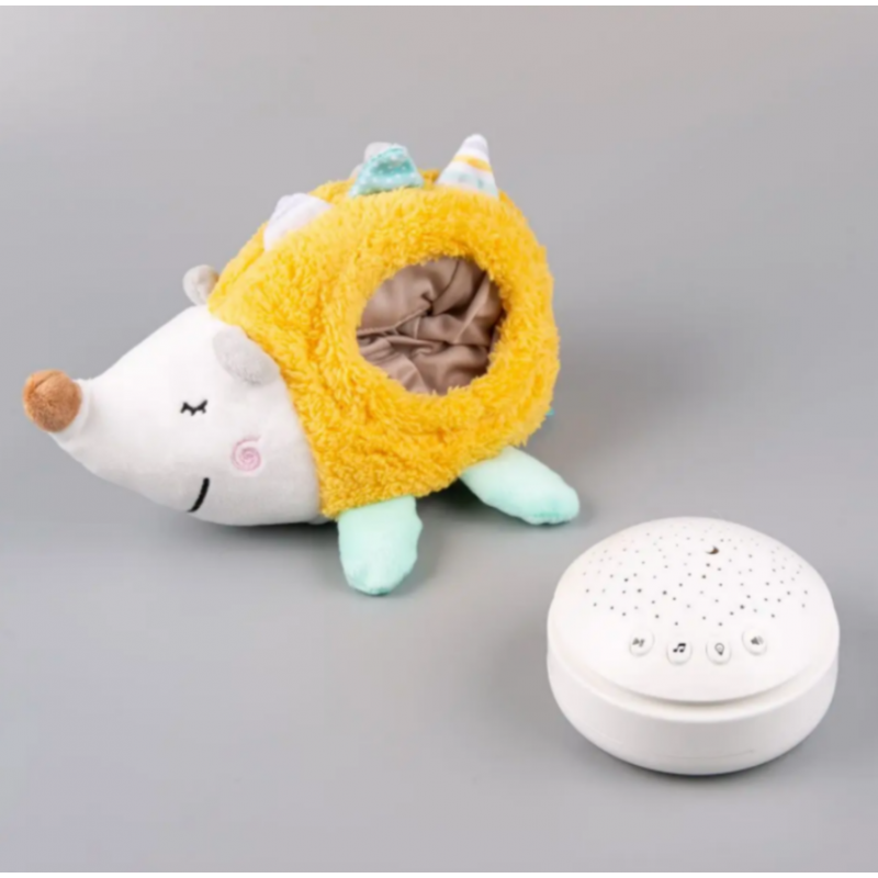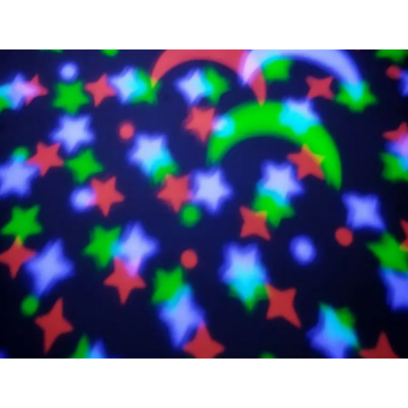 Имеет световые и звуковые эффекты: воспроизводит 10 приятных мелодий и проекцию ночного звездного неба меняя 3 цвета света. Работает непрерывно в течение 20 минут.