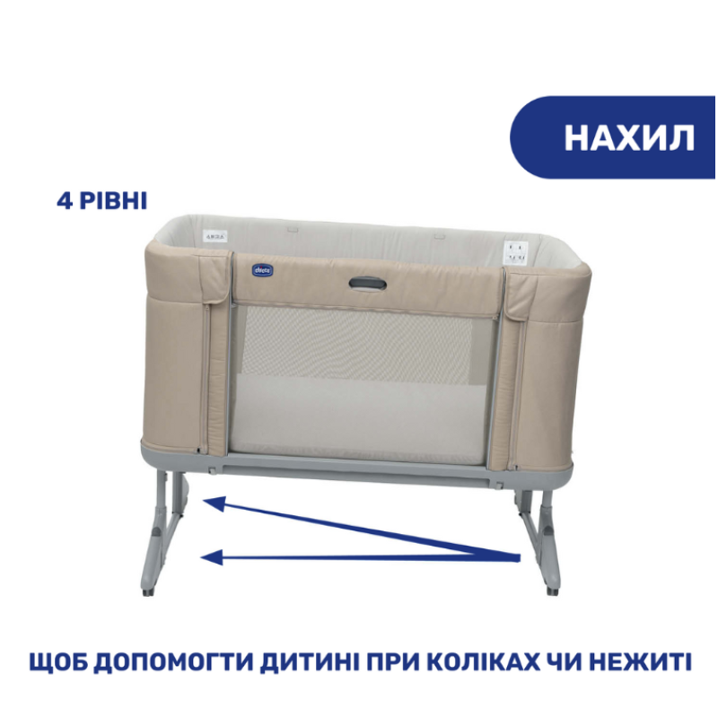 - Наклон клижа. 4 уровня наклона кроватки помогают улучшить пищеварение и дыхание в случае заложенности носа малыша.