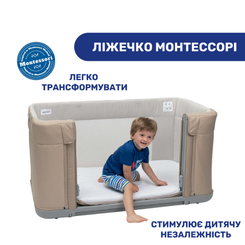Вдохновленные философией итальянского врача и педагога Монтессори Chicco трансформировали классическую кроватку в напольную кровать для обеспечения свободного передвижения ребенка.
