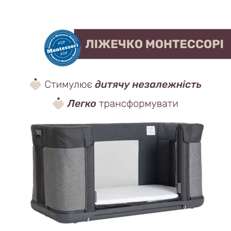 Вдохновленные философией итальянского врача и педагога Монтессори Chicco трансформировали классическую кроватку в напольную кровать для обеспечения свободного передвижения ребенка.