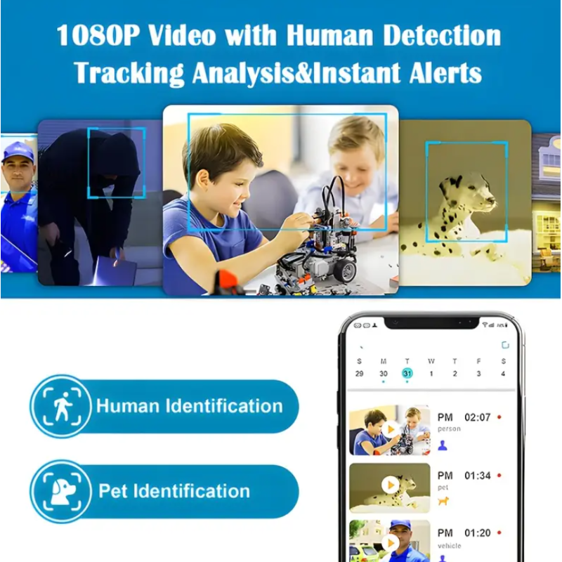 Видеоняня поворотная беспроводная IP-камера Blue Eye 1080p HD Smart, Wi-Fi