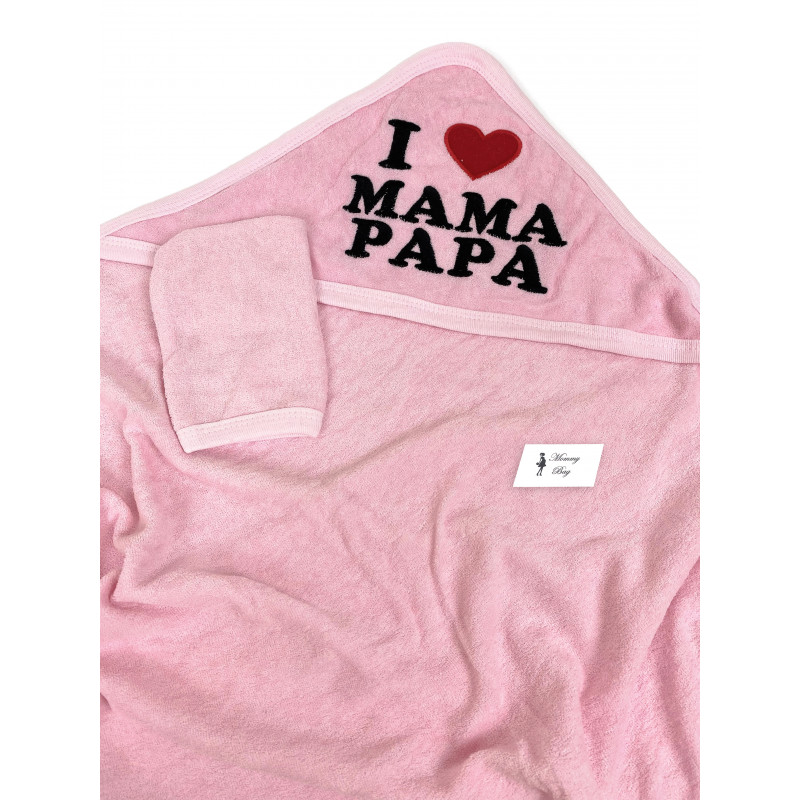 Полотенце махровое с капюшоном RoyalBaby 90*85 см I Love Daddy & Mummy Розовый + перчатка